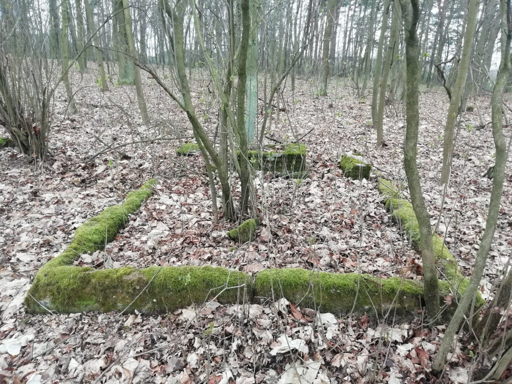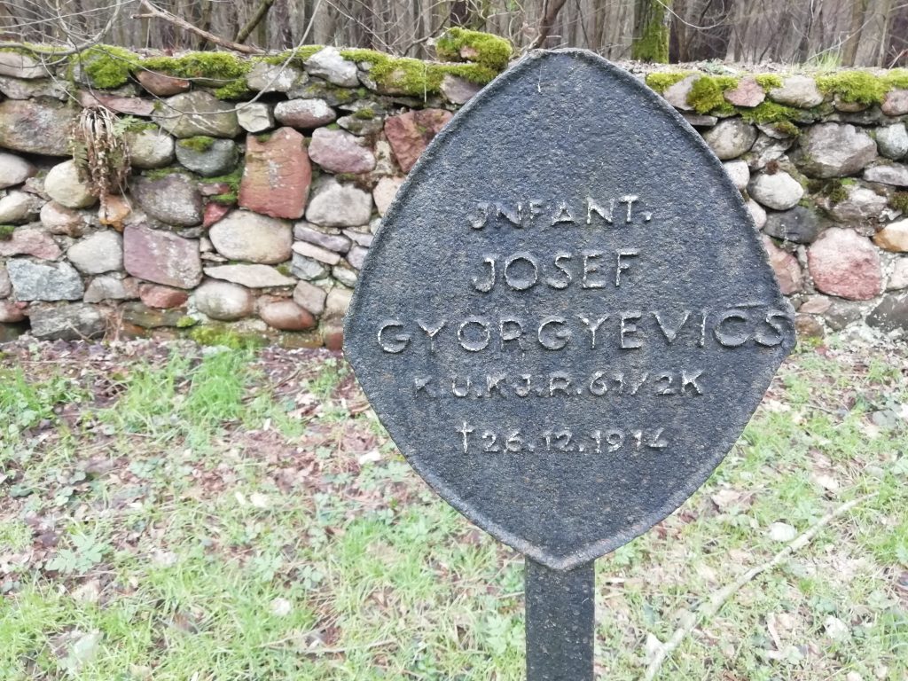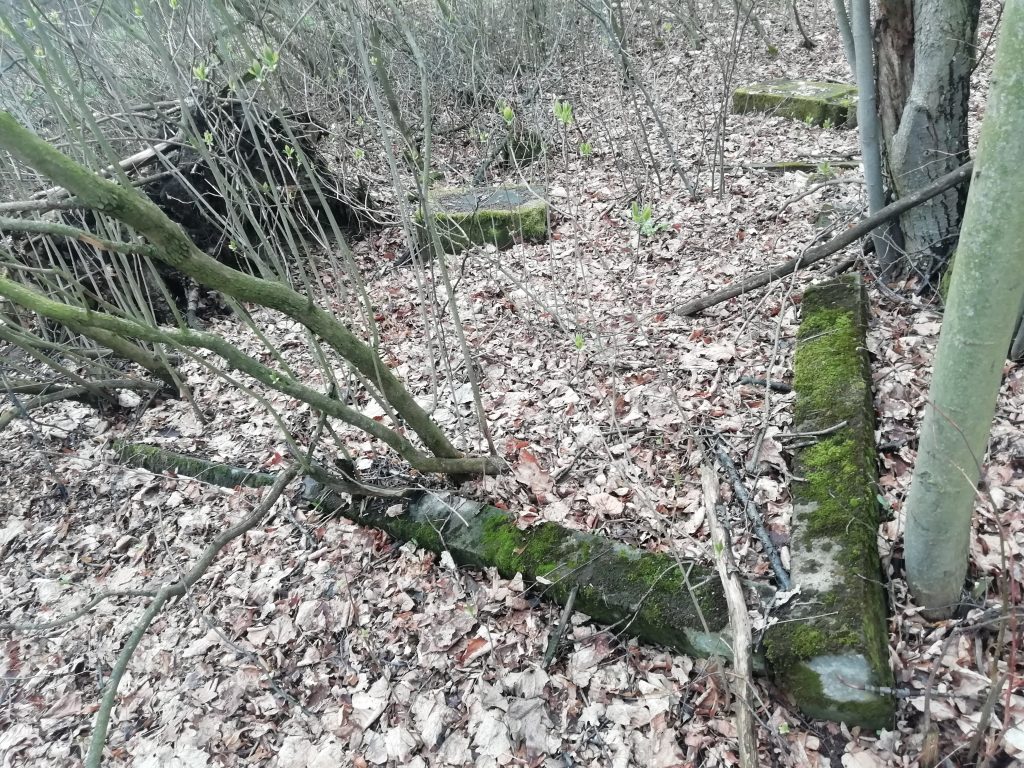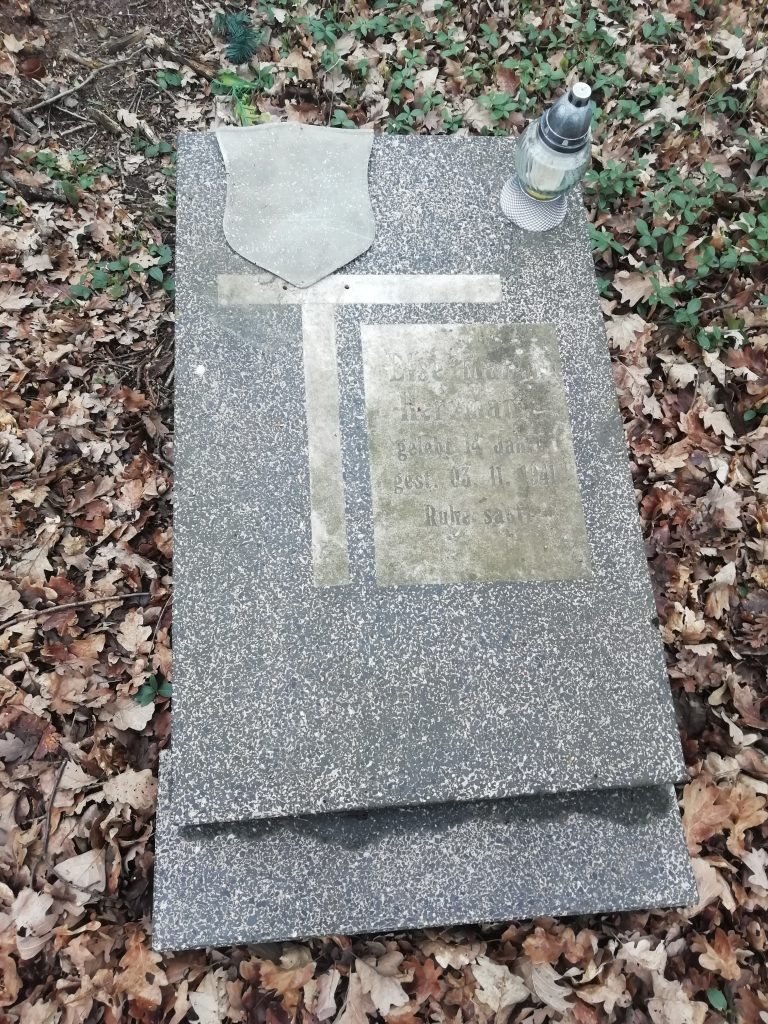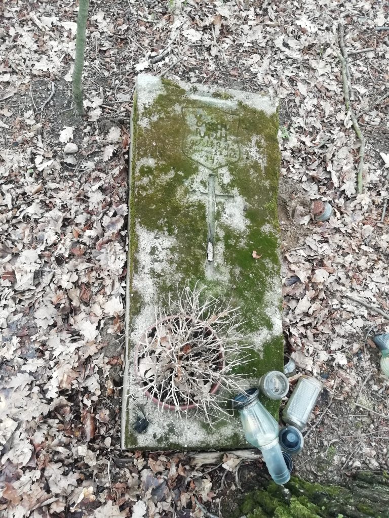 Znajdujemy również kilka nagrobków z napisami w języku niemieckim z pierwszej połowy XX wieku. Na szczycie jednego prostokątnego cokołu widać ślad po uciętym krzyżu. Na dole widnieje porośnięta mchem inskrypcja „RUHE SANFT IN DIESER GRUFT BIS DICH EINST DEINE JESU RUFT”, znacząca „Odpoczywaj spokojnie w tym grobie, aż twój Jezus do ciebie nie zawoła”.