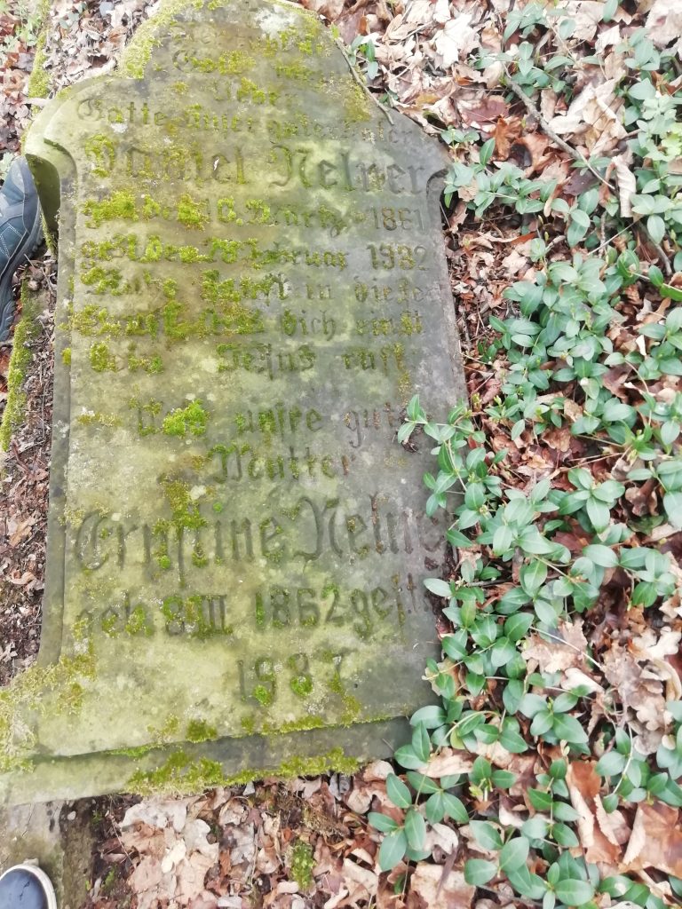Na innej płycie znajduje się napis „Hier ruht in Gott mein lieber Gatte und guter Vater Daniel Kelner […] 1861-1932 […] Und un[se]re gutte Mutter Er[nft]ine Kelner […] 1862-1937” , czyli „Tu w Bogu spoczywa mój drogi mąż i dobry ojciec Daniel Kelner […] 1861-1932 […] oraz nasza dobra matka Er[nft]ine Kelner […] 1862-1937”.