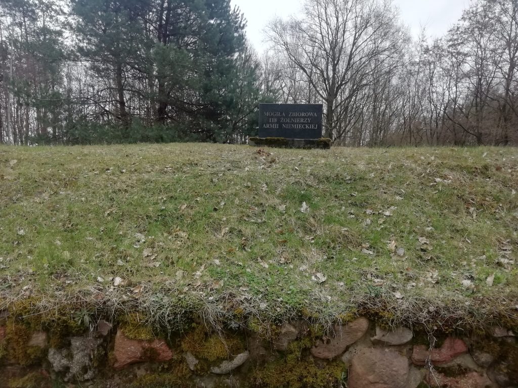Niestety nie był to koniec procesu grzebania w tym miejscu poległych. W 1945 roku na terenie cmentarza zorganizowano kolejne dochówki – tym razem żołnierzy niemieckich poległych w trakcie ofensywy styczniowej. Pochowano ich w dwóch mogiłach. W pierwszej, zorganizowanej na niezwykle niewielkiej powierzchni po lewej stronie od wejścia, przy murze cmentarnym pochowano 24 poległych. Drugą mogiłę stanowił fragment zaadaptowanego do tego celu rowu przeciwlotniczego znajdującego się w tylnej części cmentarza. Wrzucono do niego i zagrzebano ciała 68 poległych. Ekshumacji i przeniesienia szczątków z dwóch wyżej wymienionych mogił dokonano w maju 2010 roku.” (źródło)