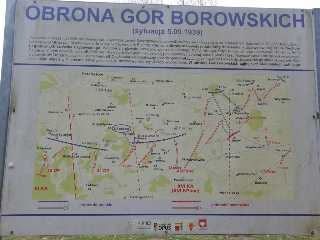 4 września polskie szeregi wzmocnił 7. baon ckm z GO Piotrków (gen. bry. Wiktor Thommée), a oddziały zajmujące już dany region zostały włączone do jednostki GO. Rankiem następnego dnia, gdy nasze jednostki zostały przegrupowane nastąpił atak (wypartej kilka dni wcześniej) 4 dywizji pancernej, wspierany artylerią i lotnictwem. Po silnym ostrzale z dział, piechota wspierana czołgami ruszyła na polskie pozycje. Wywiązały się zaciekłe walki, a szczyt przechodził kilkakrotnie z rąk do rąk. Dochodziło do starć na bagnety, a obie strony poniosły spore straty. Liczebność polskich kompanii zmniejszyła się do ok. 50 żołnierzy. Około godziny 19:30 oddziały Reinhardta zajęły Borową Górę, ale pomimo to nasze jednostki broniły się nadal, ostrzeliwując wroga ze stoków wzniesienia. Wymiana ognia trwała do około godziny 22. Polacy wycofali się dopiero po otrzymaniu rozkazu.” (źródło)