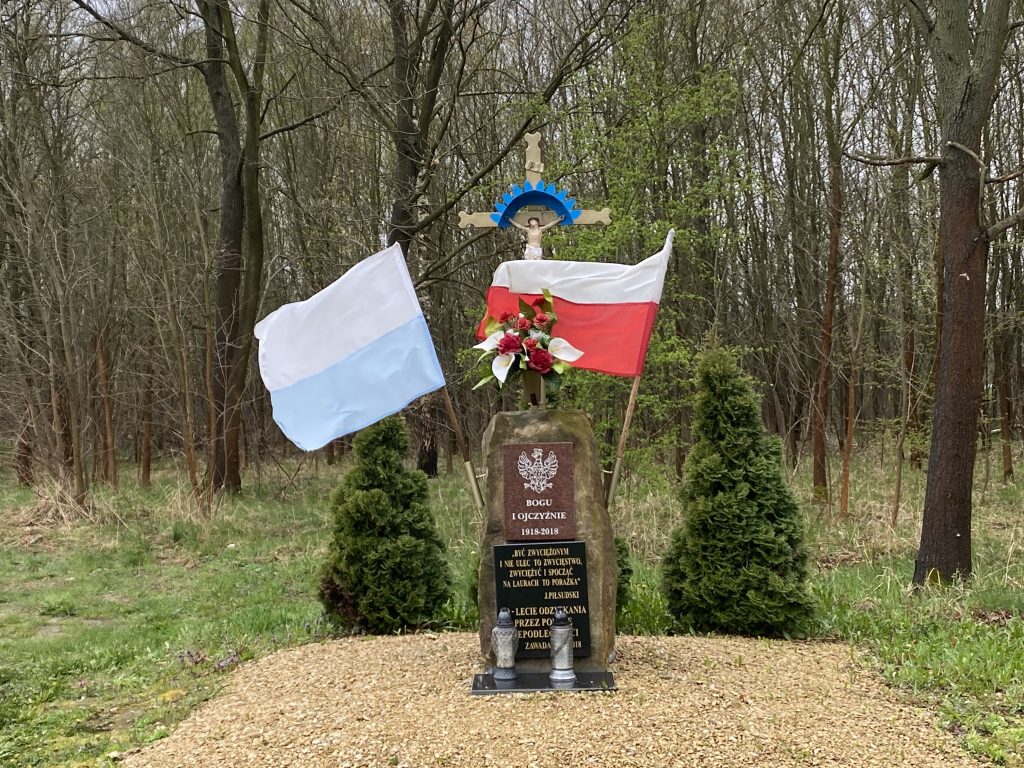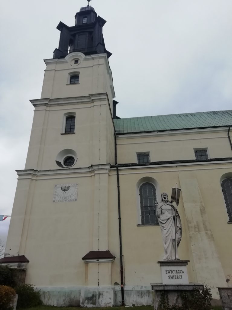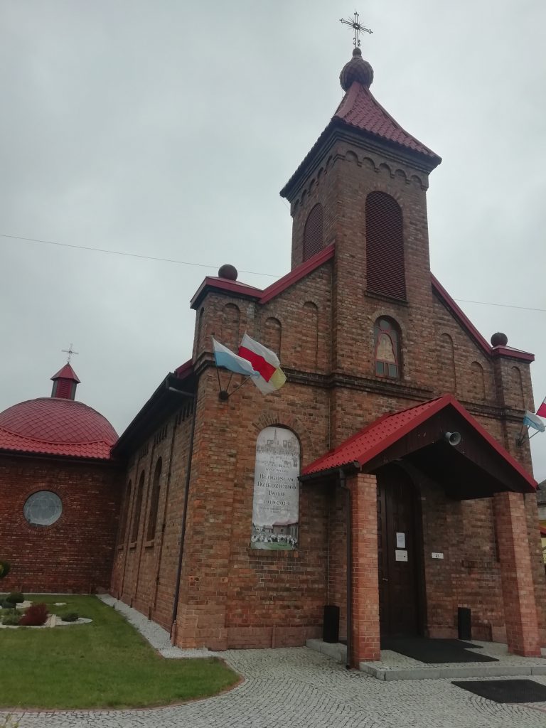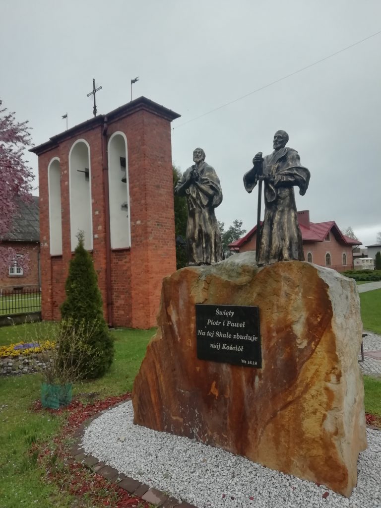 Jadąc drogą krajową nr 91 skręcamy w lewo. Mijamy obelisk upamiętniający rocznicę odzyskania niepodległości i kierujemy się w stronę wsi Zawada. Pierwszy przystanek tego dnia ma miejsce w Parafii Świętych Apostołów Piotra i Pawła. Niestety nie udaje się nam wejść do środka. Musimy się zaspokoić zwiedzaniem z zewnątrz.