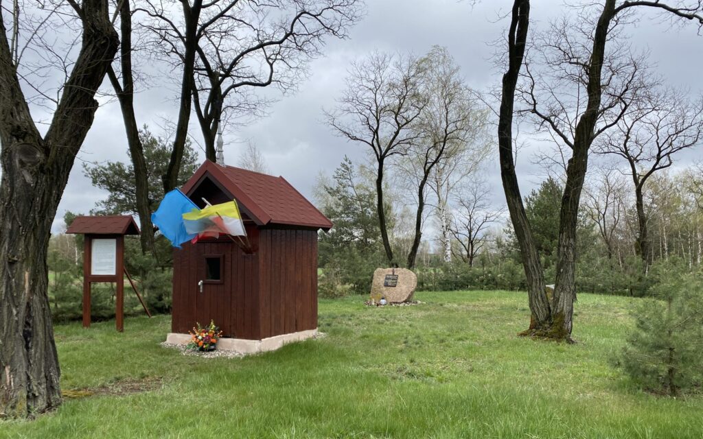 Przy ulicy Częstochowskiej mijamy odrestaurowaną kapliczkę, w okolicy której był niegdyś cmentarz choleryczny.