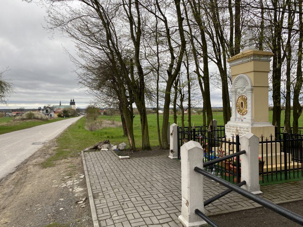 Wychodząc z placu kościelnego mijamy kapliczkę z wizerunkami świętych. Po drugiej stronie skrzyżowania znajduje się kościół św. Marii Magdaleny w Gidlach, niestety zamknięty do odwołania. Zaliczany jest on do najciekawszych drewnianych budowli sakralnych w Polsce.