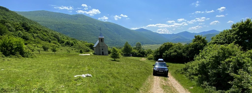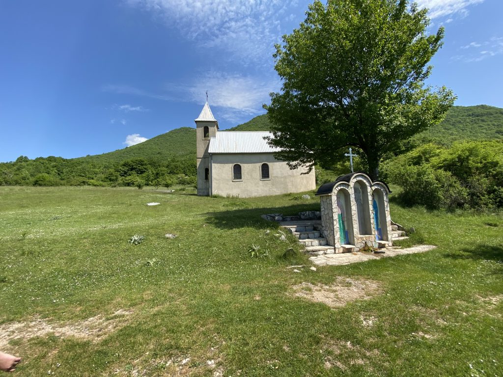Niedaleko małej chorwackiej wsi Bjelopolje znajduje się kościół Ružica. Jedziemy do niego szutrową drogą położoną w malowniczej okolicy. Niestety nie udaje nam się wejść do środka. Przy kościele znajduje się źródełko. Woda wypływa z nieco zniszczonej kapliczki. Po schłodzeniu się, jedziemy dalej. Po jednaj stronie drogi mijamy stado pasącego się bydła, a za chwilę, po drugiej stronie owce z pilnującym je bacą i psem.