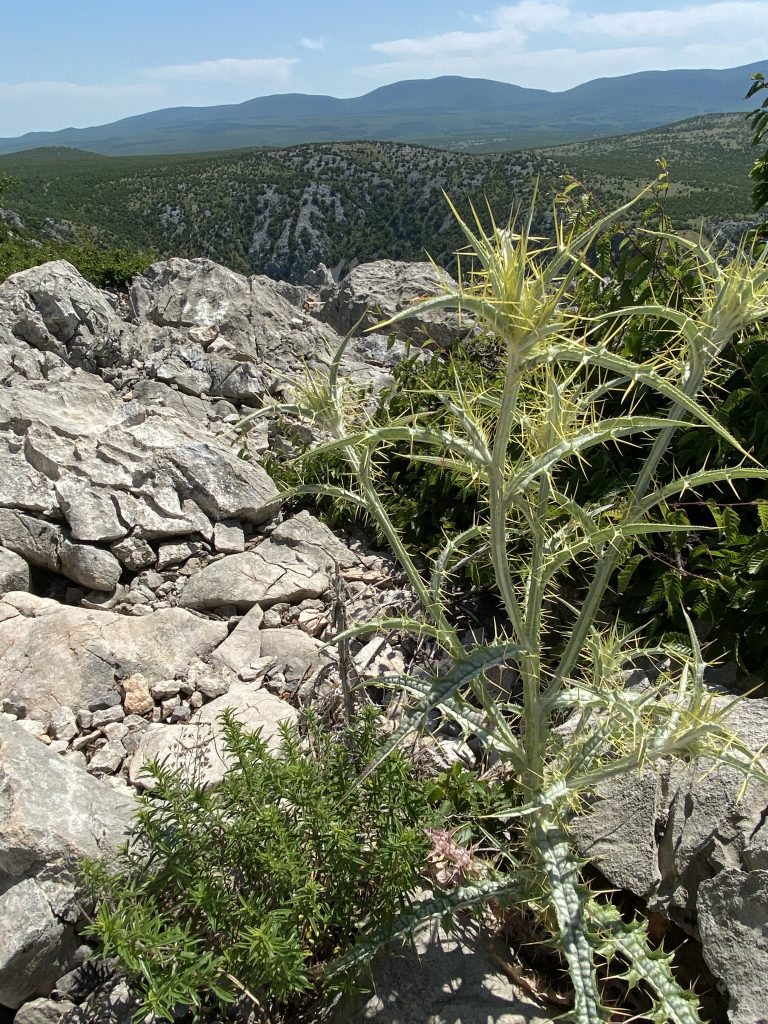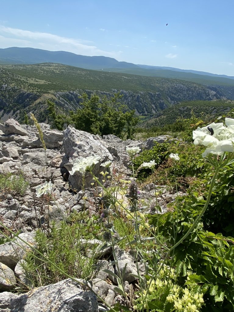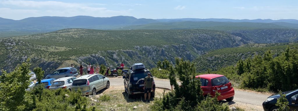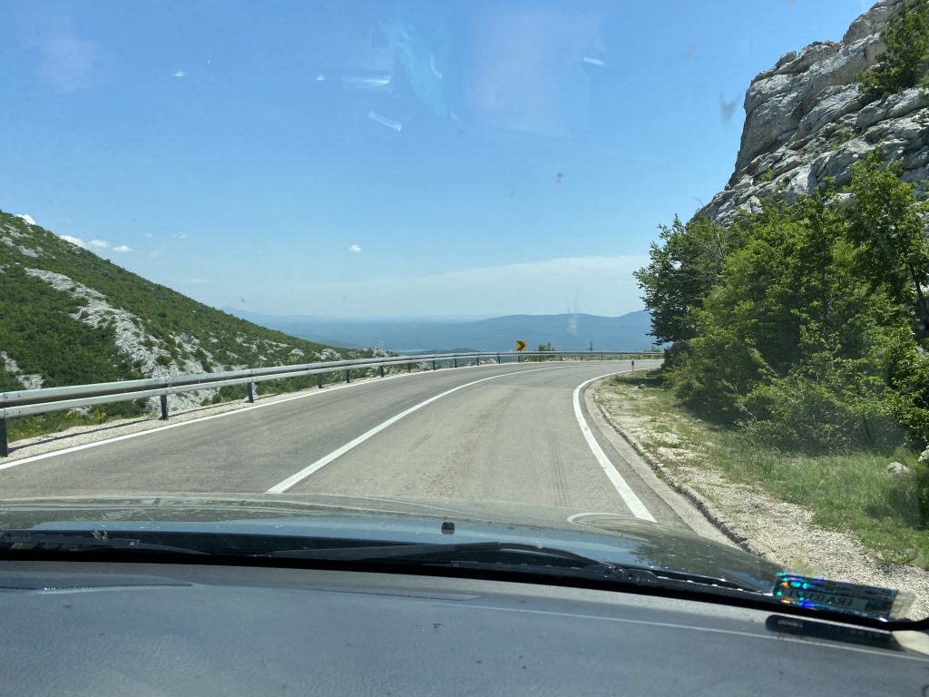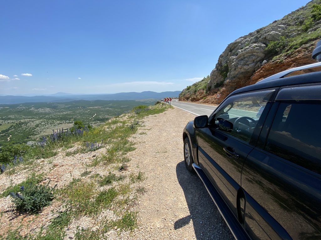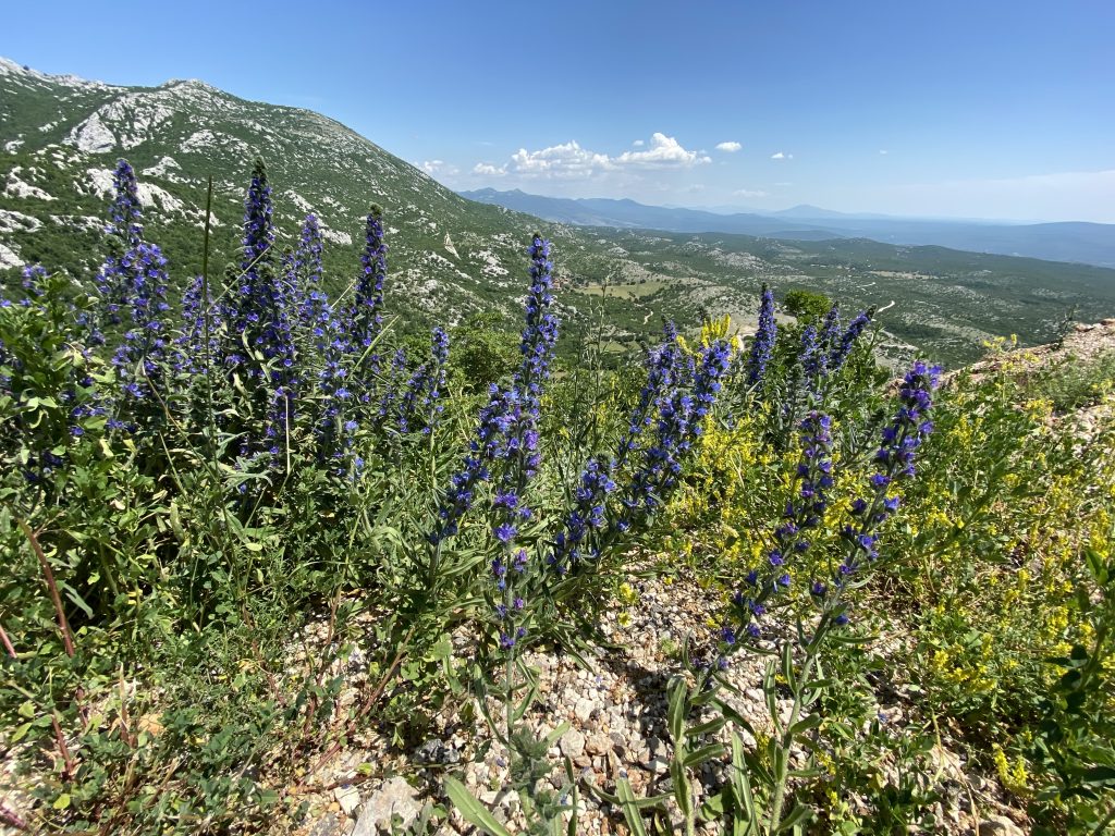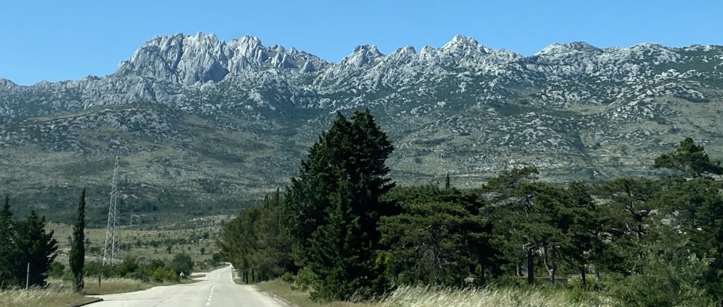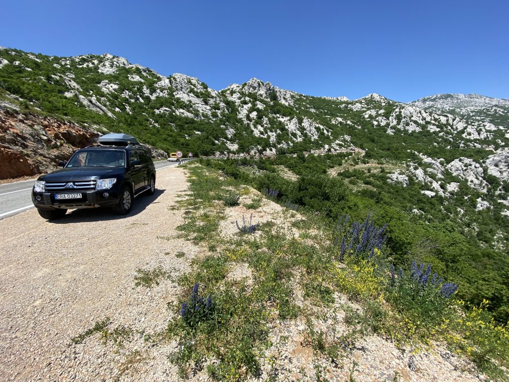 Wjeżdżamy w górzysty teren, który tworzy masyw Velebit. Ostre zakręty drogi prowadzącej przy stromym zboczu zapewniają wraz z malowniczymi widokami niezapomniane wrażenia. W nielicznych miejscach można zatrzymać się w małych zatoczkach. Wysiadając z auta przy ziemi witają nas kwitnące szałwie a w oddali bezkres pagórków.