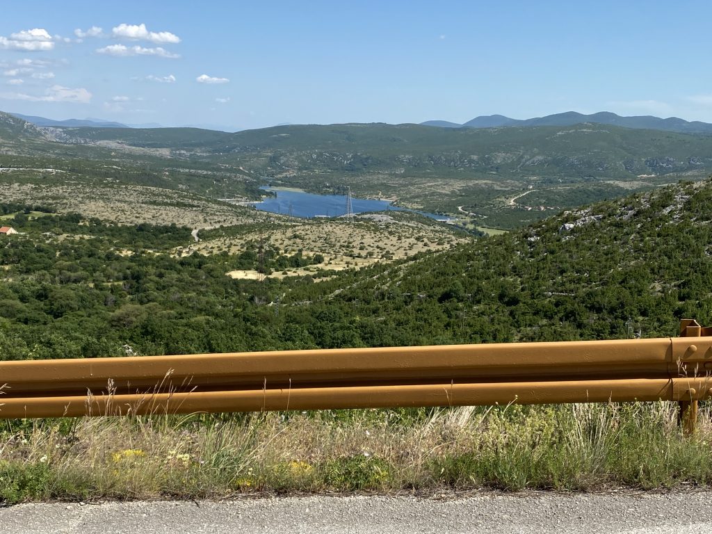 Asfaltową jezdnią podążamy dalej pod górę mijając opuncje kwitnące między skałami. Coraz lepiej widać cały kanion. Teraz ukazuje się nam zbiornik wodny utworzony przez zaporę na Zrmanji, przy którym jest elektrownia szczytowo-pompowa.