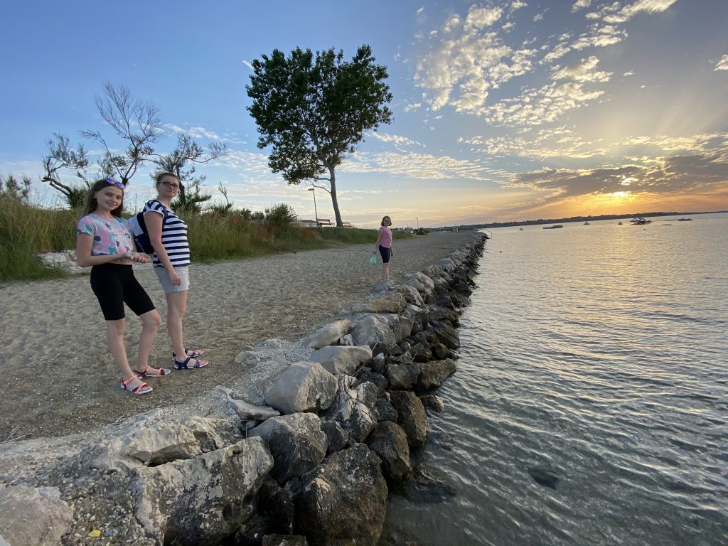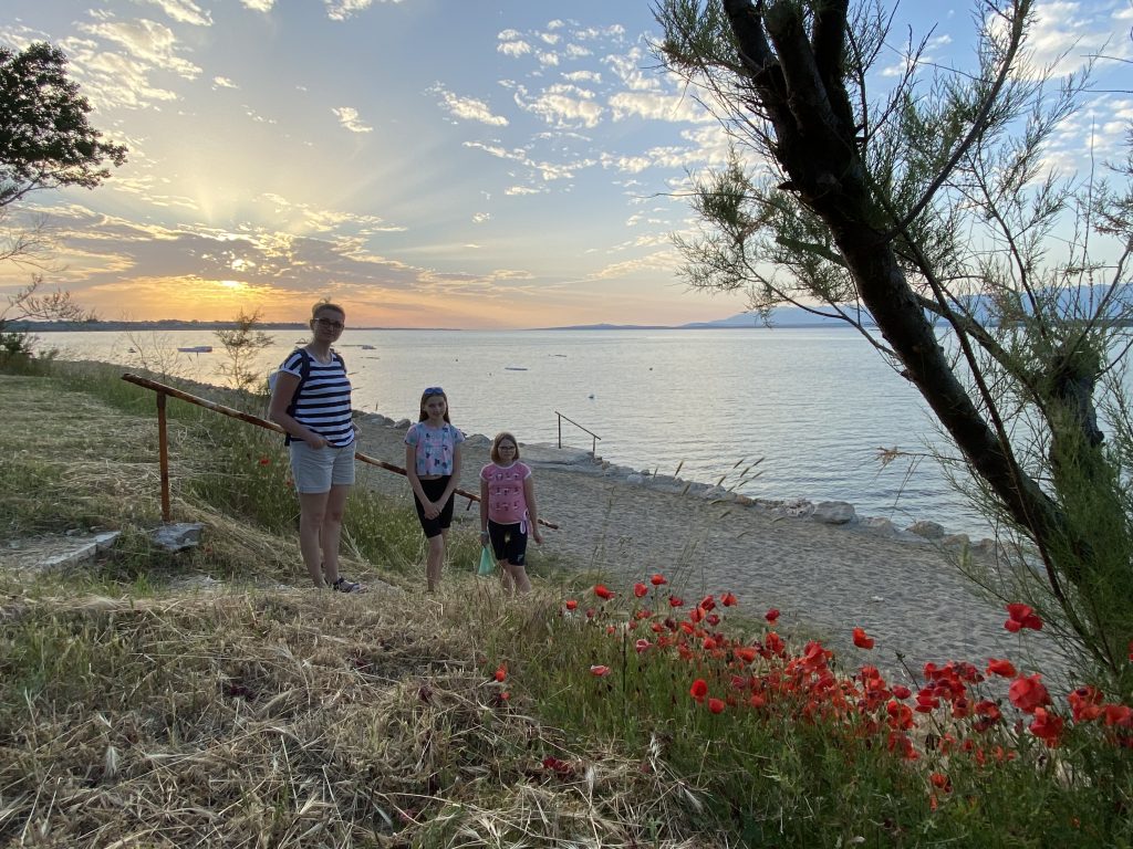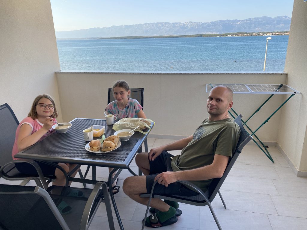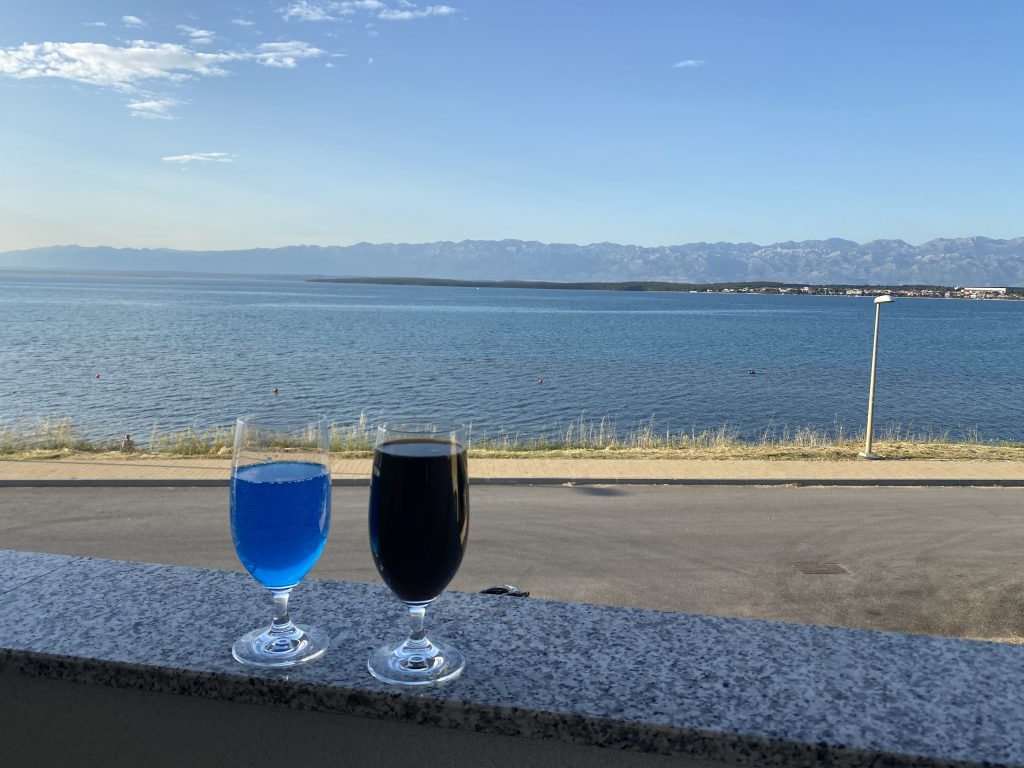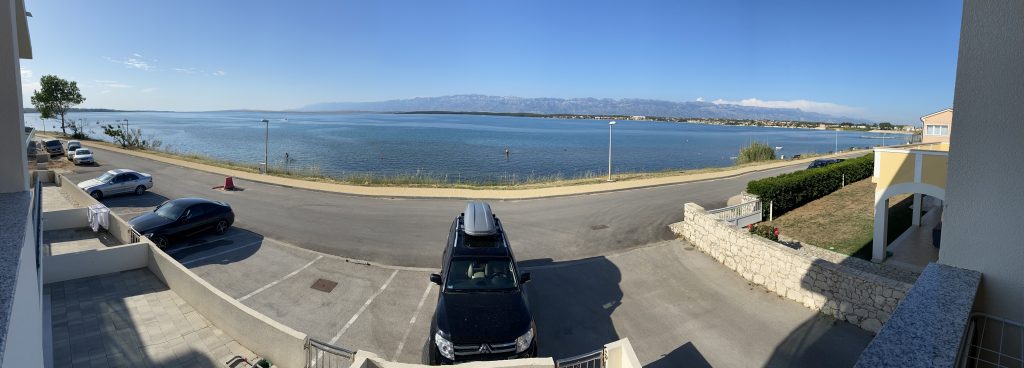 Dotarliśmy do Nin. Można się rozpakować i zjeść kolacje na balkonie apartamentu. Przyjemnie móc odpocząć w cieniu i popijając drink patrząc na morze, za którym w oddali rozciąga się Velebit. Znacznie bliżej, po drugiej stronie zatoki widać zabudowania we Vrsi oraz las porastający koniec półwyspu. Zachodnia część opisywanego pasa to kamieniste pustkowia wyspy Pag.